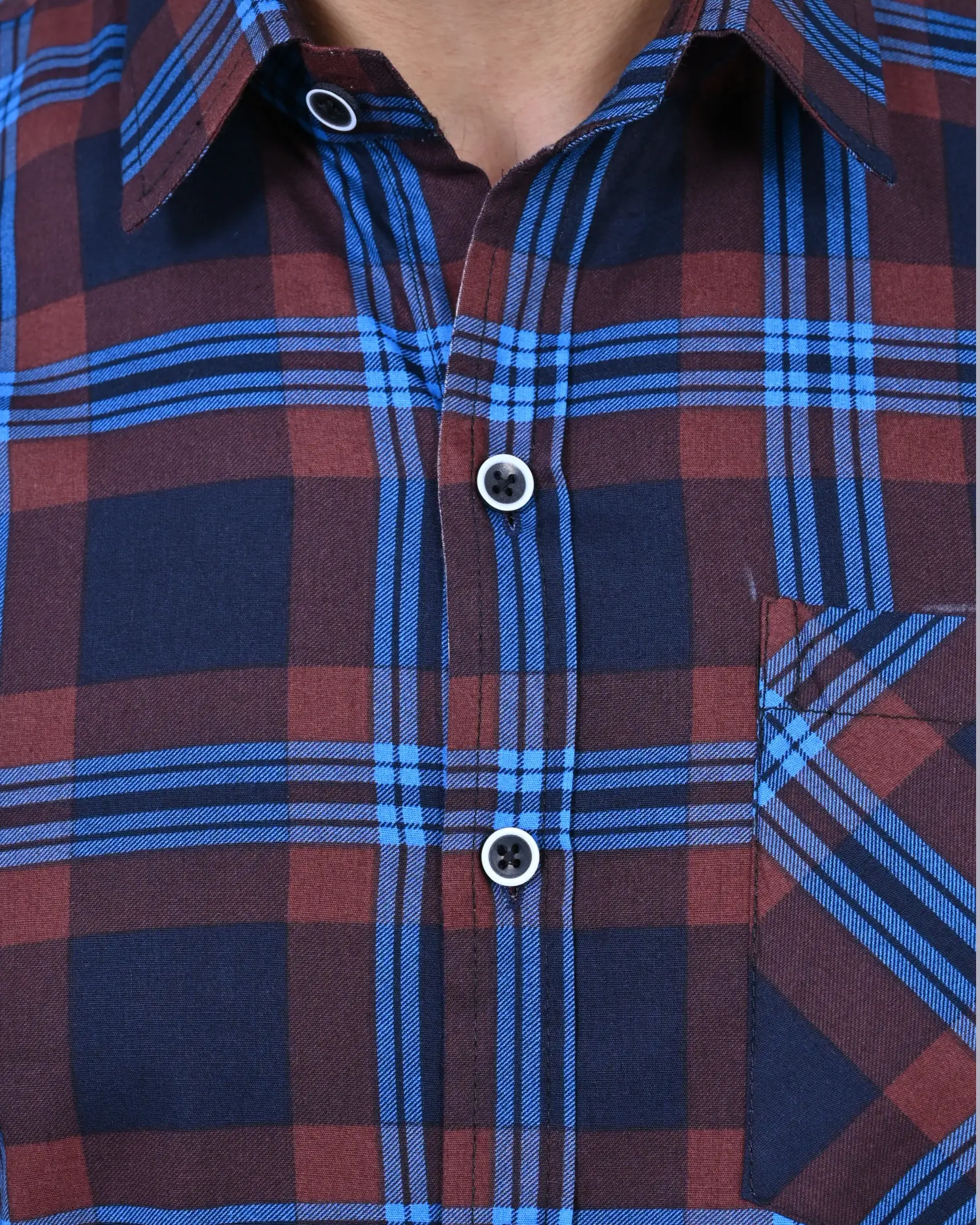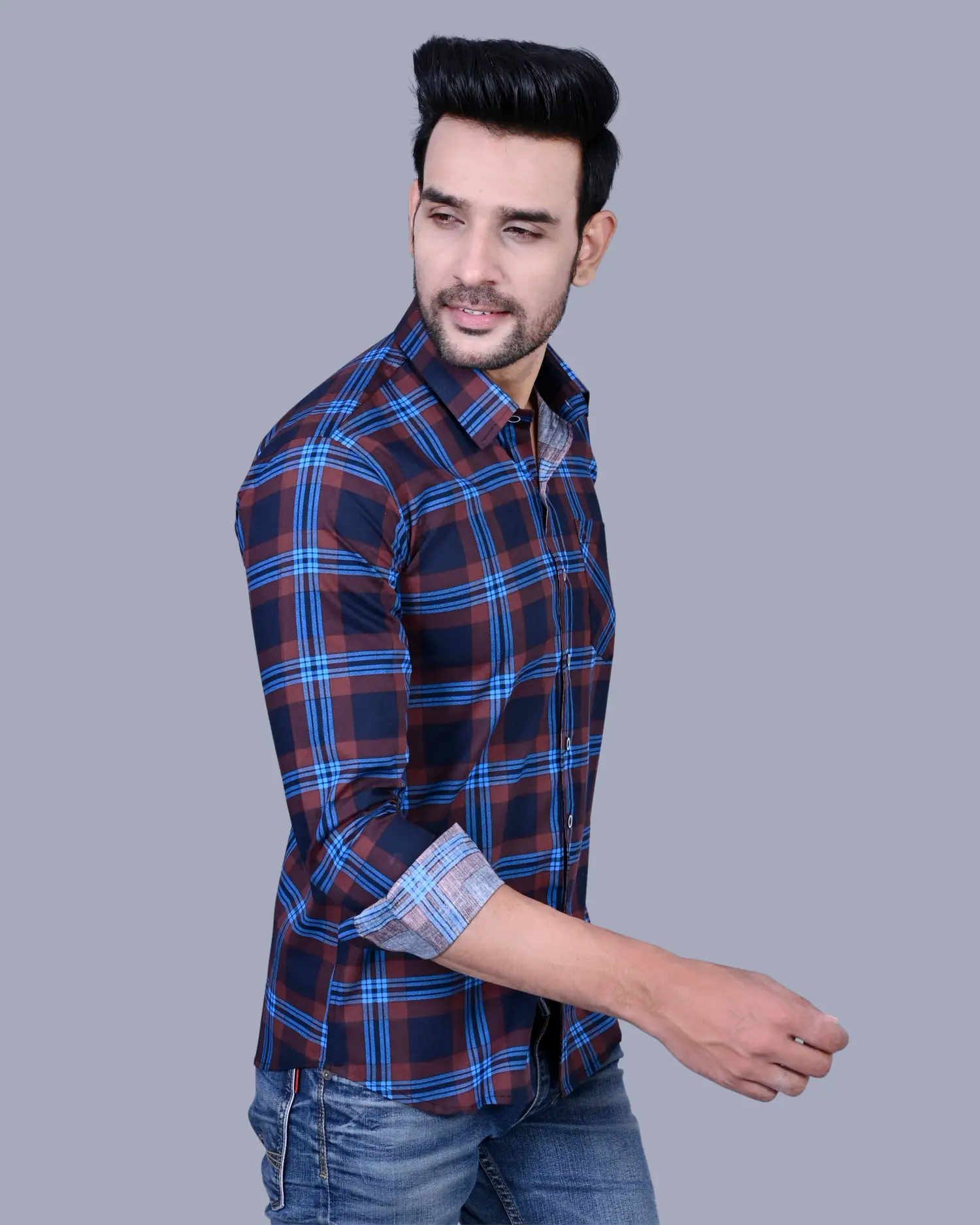 Refresh your wardrobe with this Brown Colour Full Sleeve Men Check Shirt, designed to give you a sharp and stylish look every day. Featuring a classic check pattern and a modern fit, this shirt is perfect for both casual and semi-formal occasions. The breathable fabric ensures all-day comfort, while the rich brown shade adds a rugged yet refined appeal.