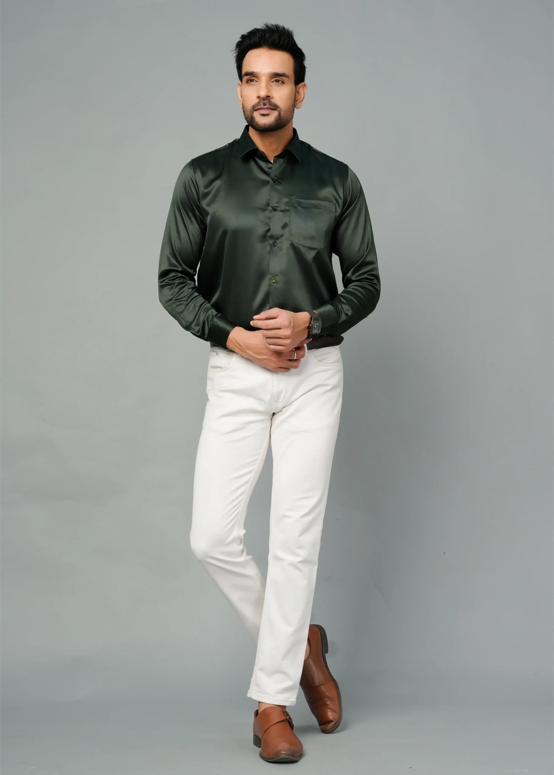 Dark Green Colour Full Sleeve Men Formal Shirt