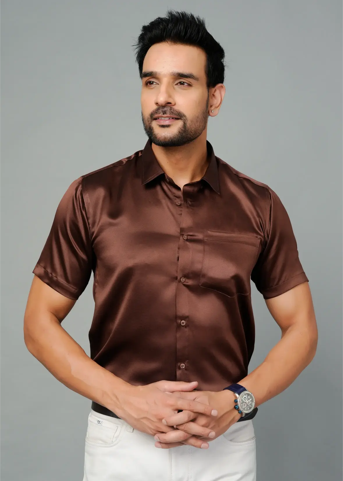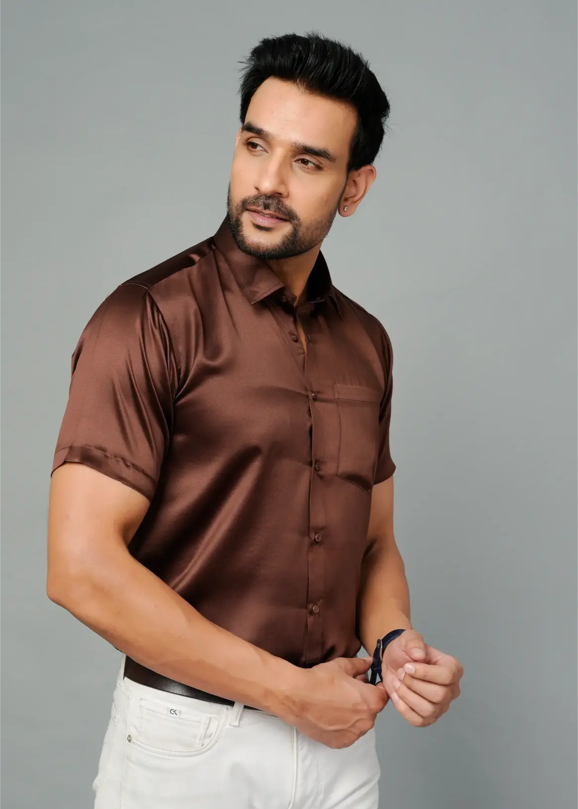 Brown Colour Half Sleeve Men Formal Shirt – Bold, Professional & Comfortable