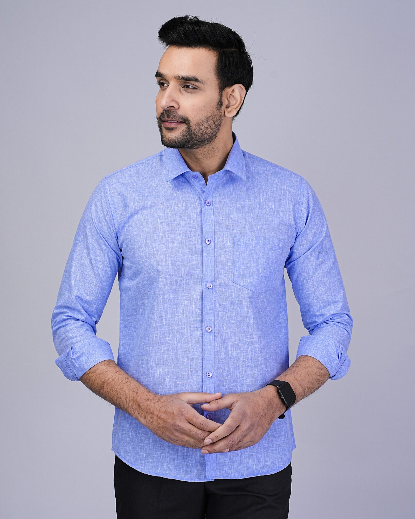 Crafted from premium cotton, this light blue formal shirt offers all-day comfort and a crisp, polished look.