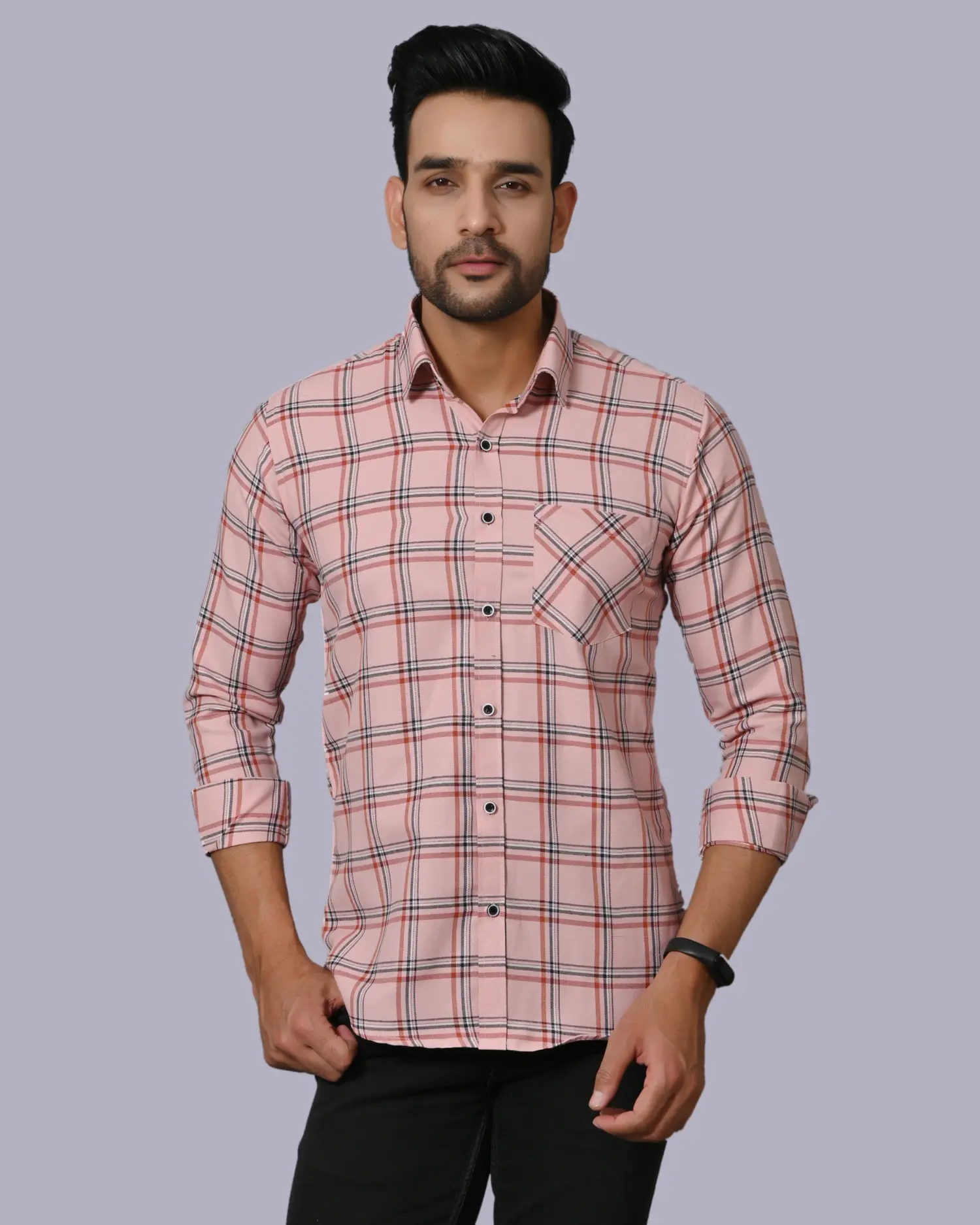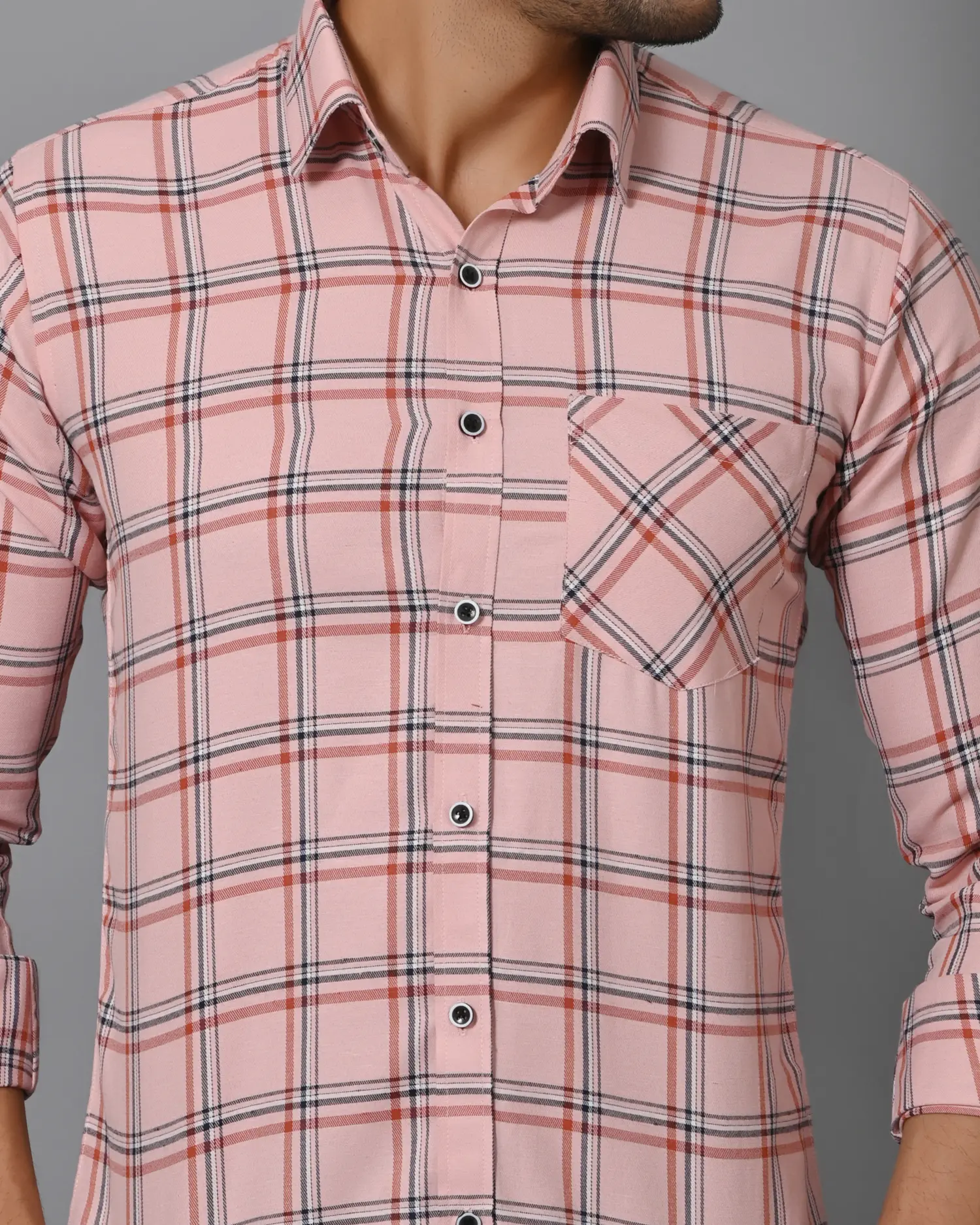 Make a statement with this stylish and comfortable Light Pink Colour Full Sleeve Men Check Shirt. Designed for the modern man, this shirt features a timeless check pattern in subtle pink tones that suits every occasion—from office meetings to casual outings. Crafted with a soft cotton blend fabric.